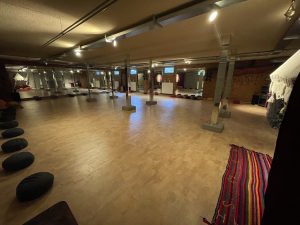 Een bewegingsruimte met muziekinstallatie, cursusruimte met beamer en een kleiner stilte/chakra ruimte.